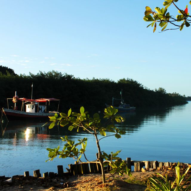 No fim da tarde, aprecie o pôr do sol no rio — um dos mais belos do Brasil — e celebre sua última noite em Caraíva.