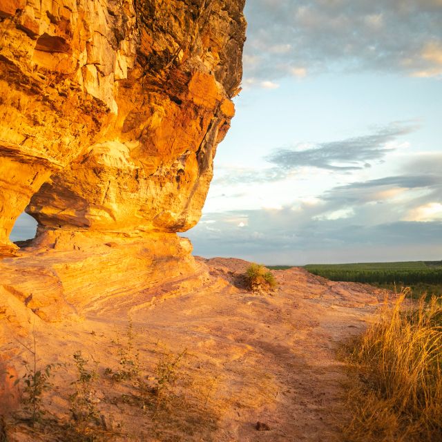 Sairemos em direção à Pedra Furada, conjunto de blocos de arenito que reinam imponentes no cerrado; com um buraco causado pela erosão, lembrando um portal e que permite uma linda vista de toda a região e de onde, se o tempo permitir, será possível contemplar o por do sol ( depende de condições climáticas).