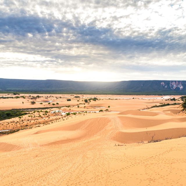 Seguiremos para outro destino imperdível, as Dunas do Jalapão, formadas a partir da erosão da Serra do Espírito Santo e transportadas pelos ventos, a areia de tom alaranjado, forma dunas de até 40 metros de altura, nos presenteando com vistas imperdíveis e tornando o entardecer único e divino. Aproveite para sentar no alto das dunas e apreciar as belezas naturais da região e a vista privilegiada das Serras. Dica Schultz: antes de subir às dunas, reforce o protetor solar e também o repelente, no alto das dunas tem as famosas “mutucas” (pernilongos, muriçocas, etc) ! Previna-se.